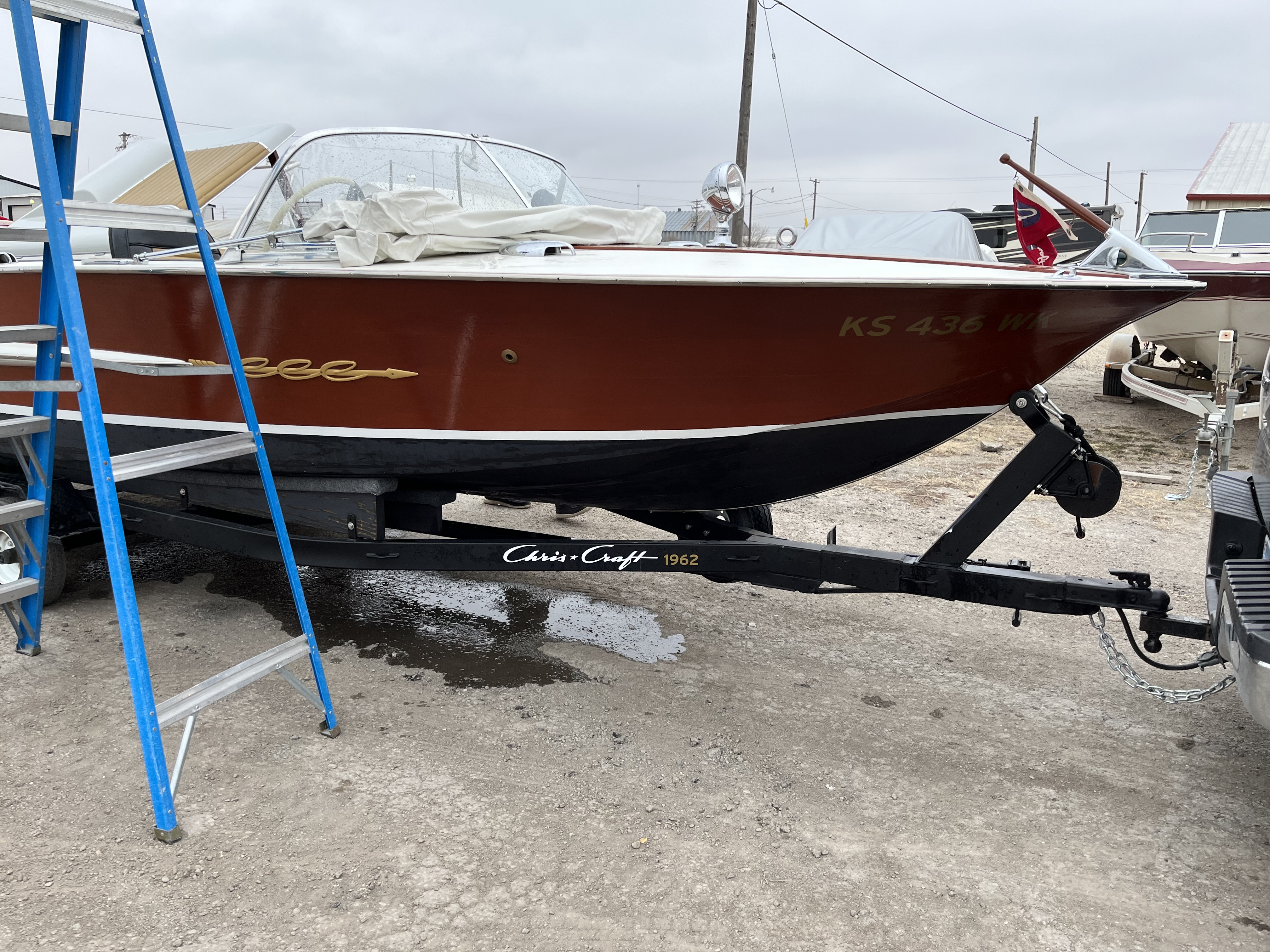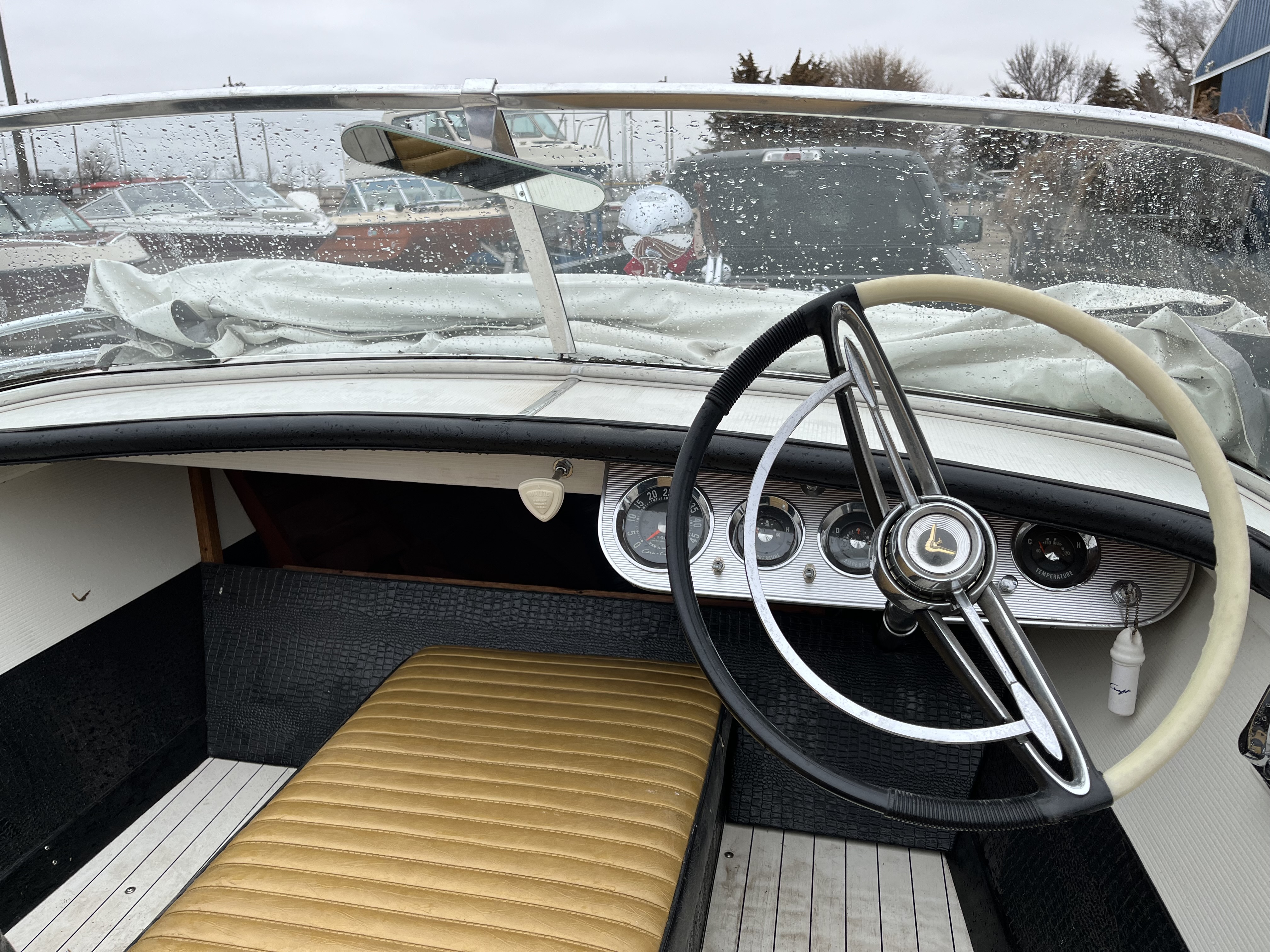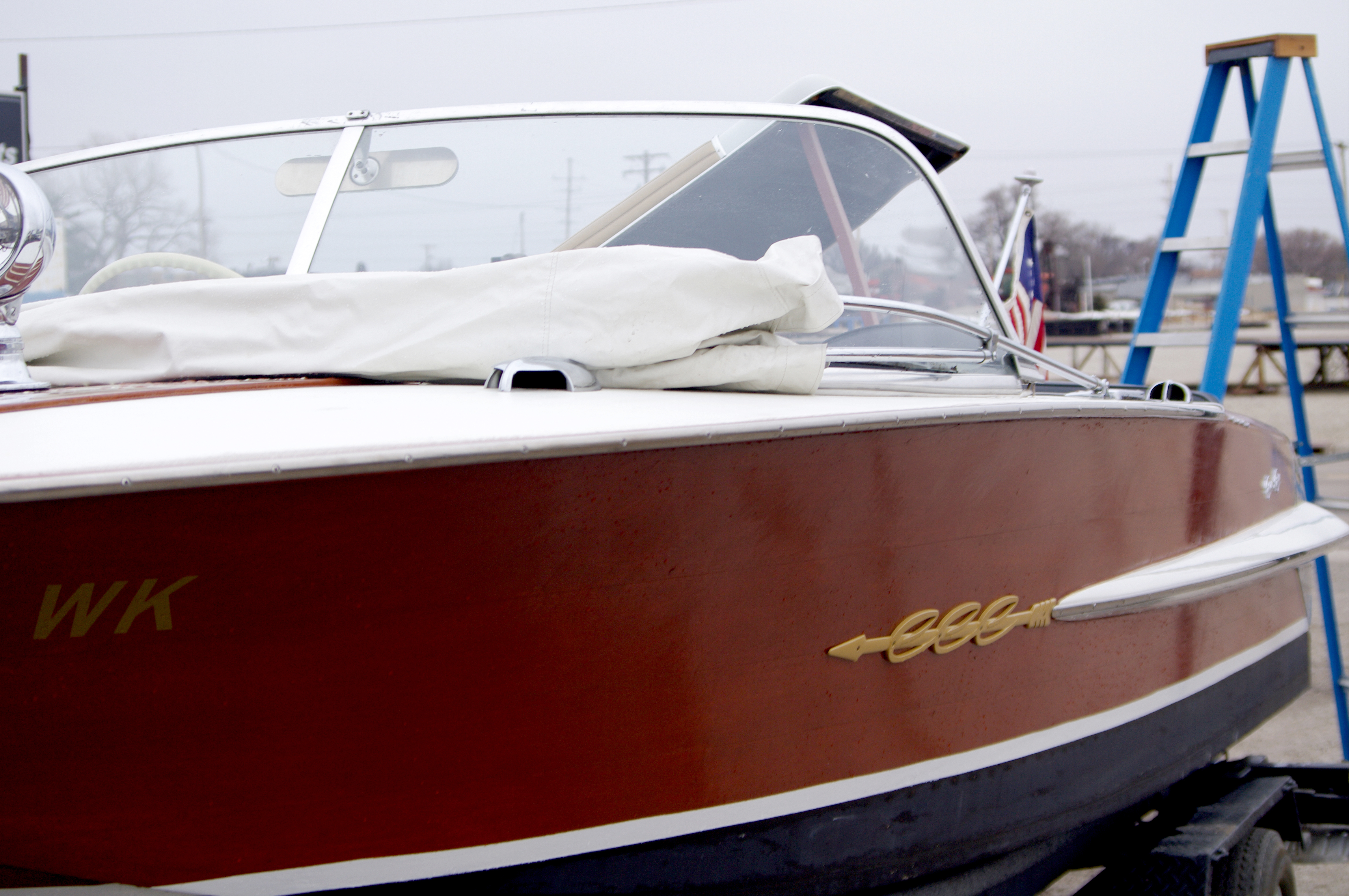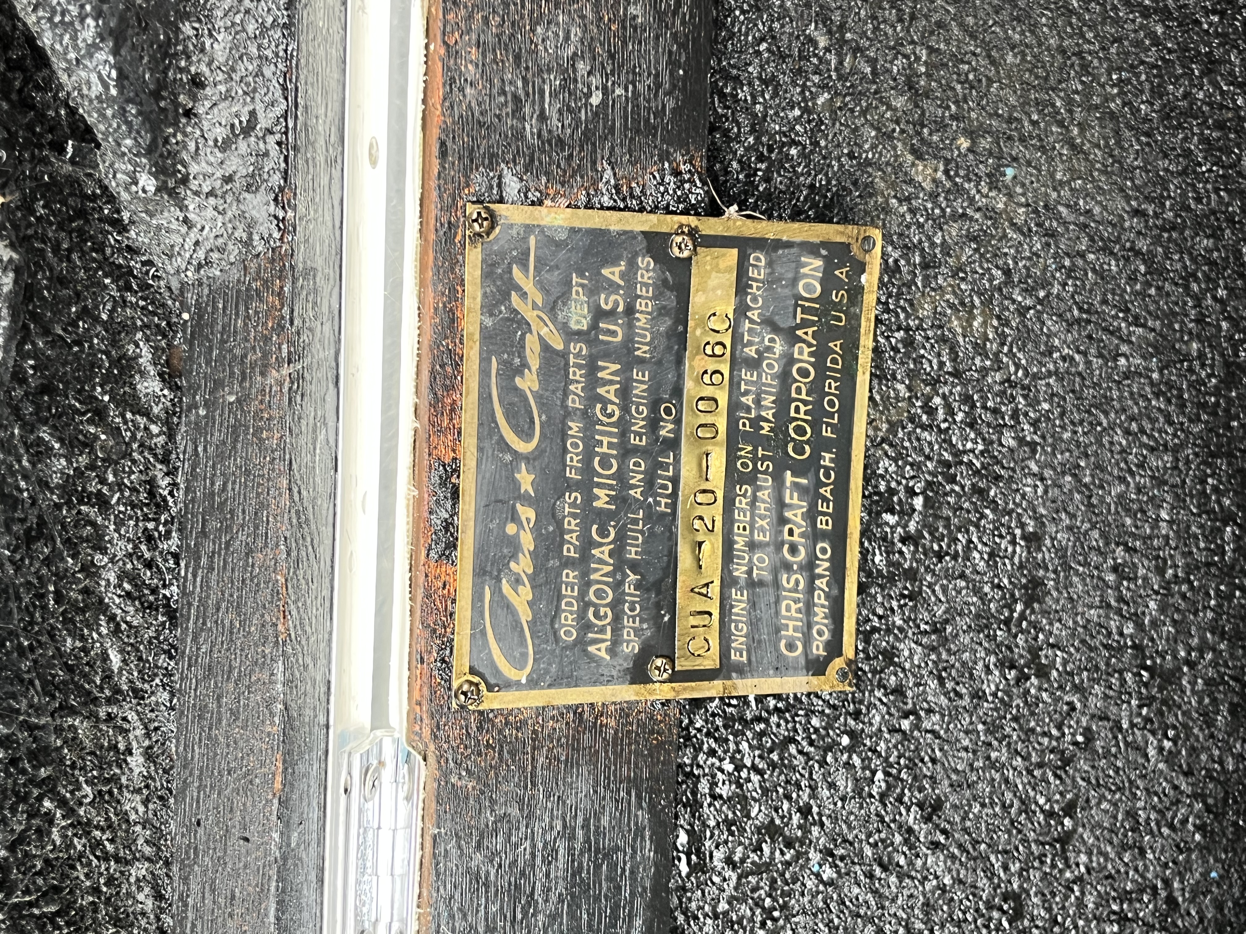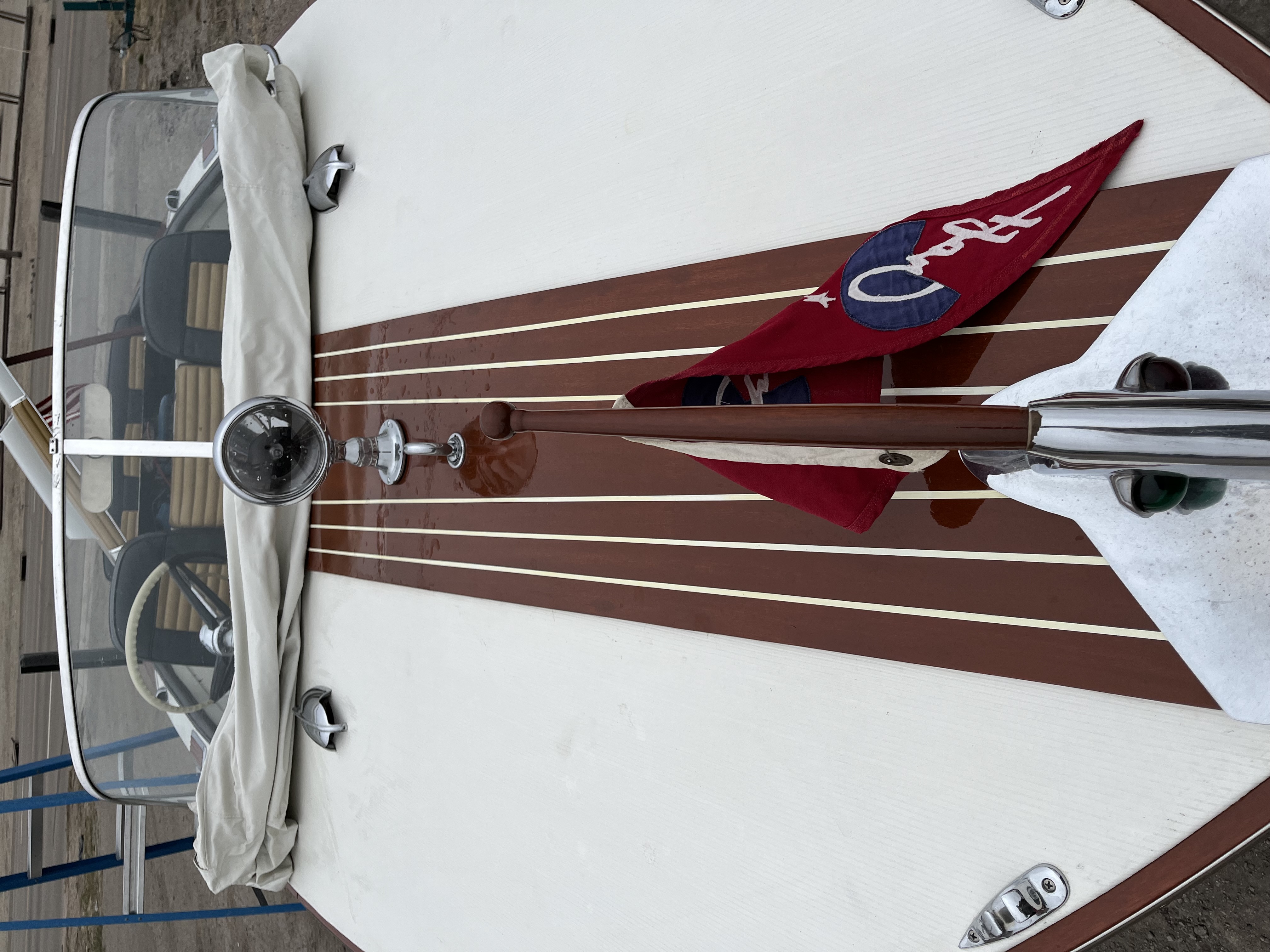 The Chris Craft arrow emblems, as well as the boat name have been hand-made in aluminum and powder coated in the original gold color. Named Blanca Stella which means "white star" in Spanish.
