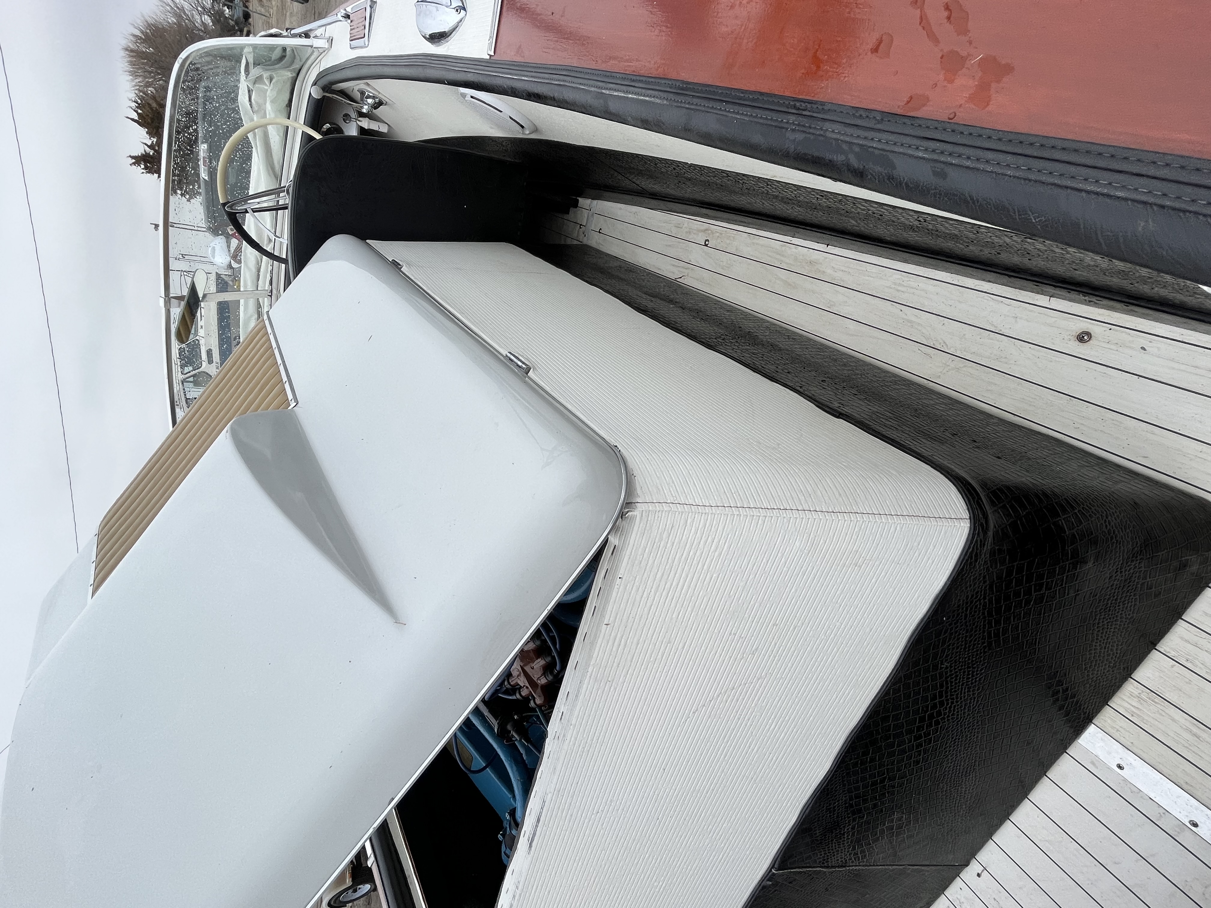 The Holiday was completely stripped, including the bottom of the hull. The hull has a Boat Life Bottom. Hundreds of brass screws were replaced as well as some of the bung holes. The 431 was completely rebuilt. There was dry rot on the top of the bow needed replaced. The top of the back stern had veneer and was replaced with solid mahogany. Three bow planks were replaced.