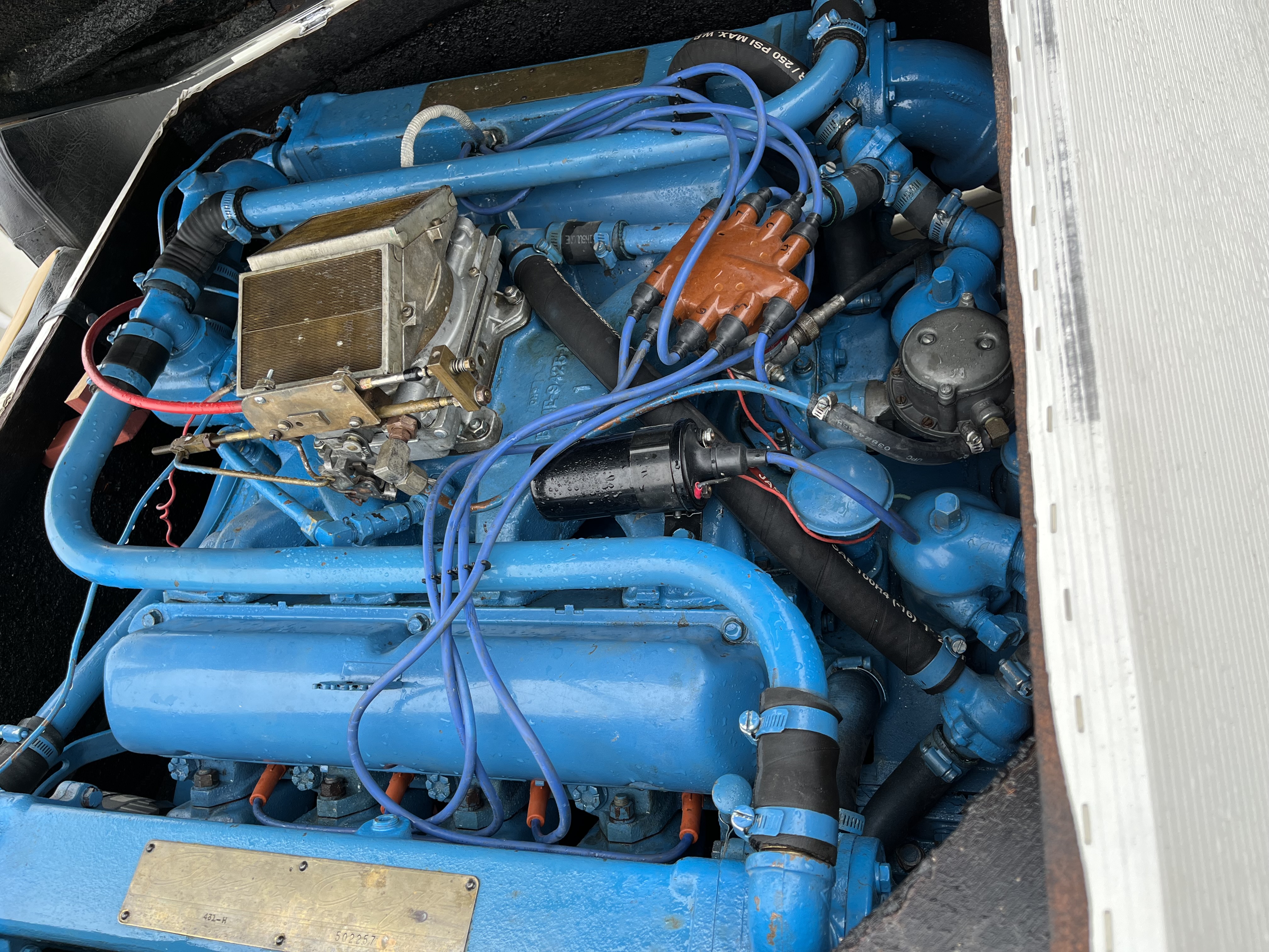 The engine is a Chris Craft/Ford-Lincoln 431cu in big block that puts out well over 300hp.